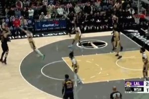 滑了一步!肯纳德面对阿门后退时踩到中线 被吹回场违例