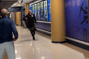 奔跑的五花肉约基奇复出战快船 赛前惯例从球员通道狂奔入场