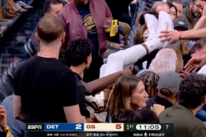 态度没得说!追梦拼抢直接摔进观众席第二排
