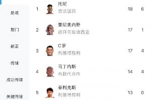 体育资讯01月31日讯 本赛季沙特联第19轮战罢,目前的射手榜上,伊万·托尼18球居首,奎尼奥内斯和C罗以17球并列第二。
