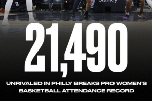 今天的Unrivaled联赛费城站是在76人的主场进行,今天的比赛有21490名球迷到现场观赛,这一数字创造职业女子篮球历史上最高的上座人数纪录。