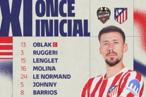 马竞客战莱万特首发:朗格莱、瑟尔洛特先发,阿尔瓦雷斯替补