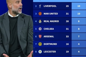 天克?瓜迪奥拉教练生涯输球情况:对热刺24场输了10次