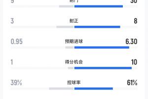 巴萨vs埃尔切全场数据:巴萨30射8正,预期进球6.3,得分机会10个