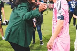 两人都乐开花!赛前梅西与传奇门将伊基塔互动,拥抱致意