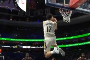 一飞冲天!琼斯送妙传 马特科维奇起飞双手空接背扣