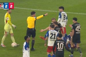 第99分钟,斯坦尼西奇被武什科维奇推搡撞向另一名汉堡球员,主裁判判罚进攻犯规,引发拜仁球员更激烈的抗议。
