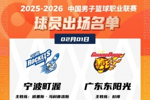 体育资讯2月1日讯 19:35宁波将在主场迎战广东,赛前大名单出炉。