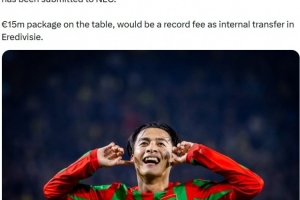 据报道,阿贾克斯已经向奈梅亨提交了首份正式报价,以求购日本前锋佐野航大。此次报价金额为1500万欧元,如果交易成功,这将创下荷兰甲级联赛内部转会的新纪录。