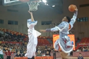 NBL全明星赛中场扣篮大赛高潮迭起,全场观众一起对香港金牛队的阿诺斯克大喊“我爱你”,声震穹顶。