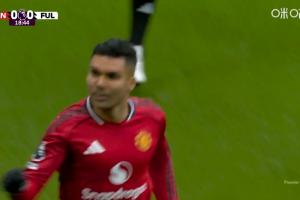 点球取消照样进!B费助攻卡塞米罗破门,曼联1-0领先富勒姆