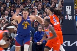 球场华尔兹?约基奇和杰林威对抗拉满 两人勾着手臂转好几个圈圈