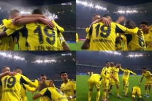 今天凌晨进行的第20轮土超联赛,费内巴切客场2-0战胜科贾埃利体育。比赛上半场补时阶段,阿森西奥禁区外远射得分,为费内巴切打破僵局。进球后的阿森西奥和队友们一起冲到场边庆祝,贡多齐也上前参与庆祝。