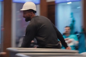 这什么造型!黄蜂主帅查尔斯·李戴建筑工人帽狂奔庆祝七连胜