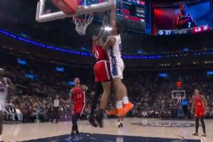 哇喔!炸裂!格莱姆斯潇洒过人 腾空单臂隔扣约翰·科林斯