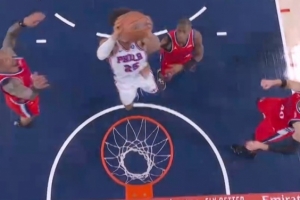 看家本领!火箭连续冲下前场篮板 最终伊森补篮得手