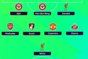 希勒评英超24轮最佳阵:埃基蒂克、卡塞米罗、维尔茨、科纳特入选