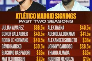 5年冠军荒!马竞近两赛季引援花费4.87亿美元,目前落后榜首10分