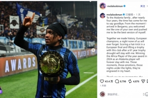 卢克曼社媒写道:“致亚特兰大家庭——经过将近四年的时间,现在到了我该说再见的时候。从我来到贝加莫的那一刻起,你们就如家人般接纳了我,并激励我成为最好的自己。