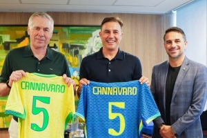 “前职业球员、现任乌兹别克斯坦国家队主教练卡纳瓦罗受到了巴西国家队主教练安切洛蒂和男足国家队协调员罗德里戈·卡埃塔诺的接见。”