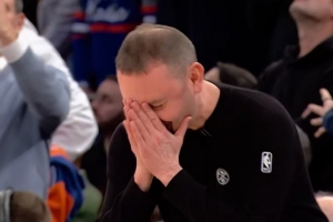 无语!布劳恩脚没动&阿努诺比被绊倒 吹进攻犯规&掘金挑战成功