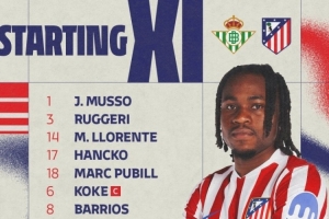 马竞首发:格列兹曼、科克领衔,小蜘蛛替补,新援卢克曼出战