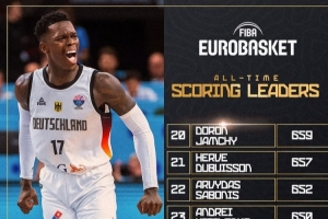 施罗德欧锦赛总得分达到631分 跻身欧锦赛历史得分榜第25位