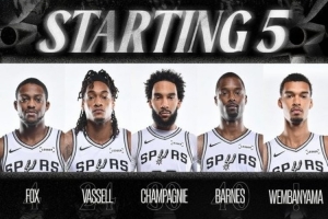 卡斯尔首次替补!马刺首发:福克斯、瓦塞、尚帕尼、巴恩斯、文班