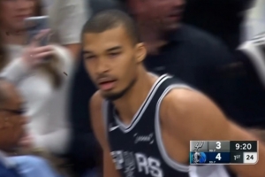 裁判很严格!文班潇洒背运过掉弗拉格 顶开马丁打进被吹进攻犯规