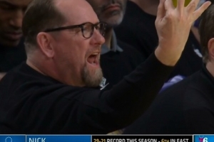 还挺贪!恩比德大回环造犯规 纳斯想要三罚但前者踩进三分线了