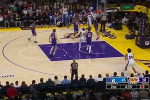 抡圆了啊!格莱姆斯沿底线突破单臂隔扣拉拉维亚