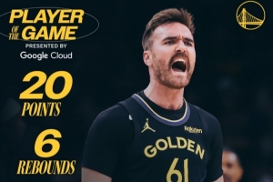命中六记三分砍下20+6!勇士官方评选本场最佳:斯潘塞当选