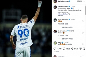 首秀3球1助!本泽马社媒:为球队感到骄傲,感谢大家的欢迎