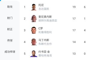而本泽马则在利雅得新月首秀中戴帽,以11球位列第8。