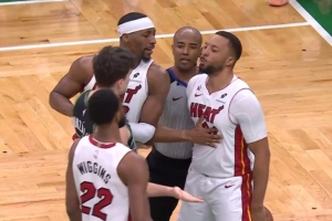 火药味!库明加被吹防守犯规后和米切尔·罗宾逊发生口角 没吹罚