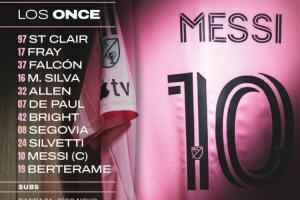 迈阿密国际首发:97-圣克莱尔、17-伊恩·弗雷、37-法尔肯、16-M·席尔瓦、32-阿伦、7-德保罗、42-布莱特、8-塞戈维亚、24-西尔维蒂、10-梅西、19-贝尔特拉梅