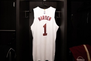 新鲜出炉!骑士官方晒哈登更衣室的1号球衣 今天将首秀