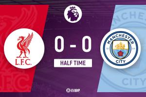 半场-利物浦暂0-0曼城 哈兰德失单刀多纳鲁马险送礼红军0射正