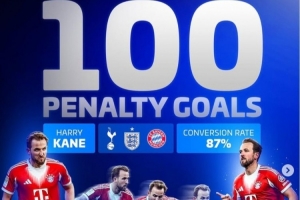 点射双响!凯恩解锁职业生涯点球100球里程碑,命中率87%