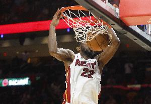 发力了!维金斯反击接哈克斯助攻飞身空接暴扣得分
