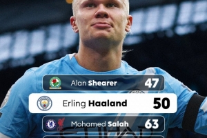 哈兰德50场比赛完成英超主场50球里程碑,效率仅次阿兰-希勒