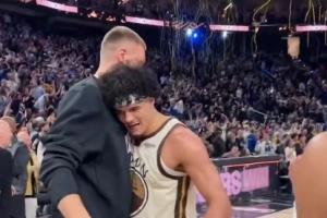 新援挺高兴~波津率先从替补席上场庆祝胜利 一直在桑托斯旁边鼓掌