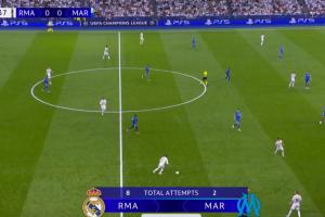 按着打!比赛皇马vs马赛仅过15分钟,皇马已射门8脚
