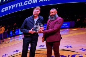 湖人主场迎战马刺 赛前东契奇领取1月份月最佳球员奖杯