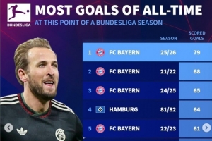 体育资讯2月12日讯 拜仁本赛季在孔帕尼带领下在各条战线高歌猛进,21轮联赛已狂轰79球。《转会市场》统计显示他们也是同期进球最多的德甲球队。