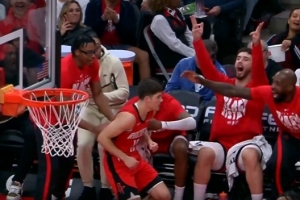 持续发力!谢泼德压哨三分命中 火箭板凳席嗨翻