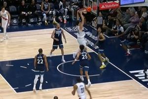 太帅啦!杨瀚森大力挂筐 双手补扣!