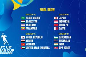 前八进世少赛!U17亚洲杯分组:国少将战日本、印尼、卡塔尔