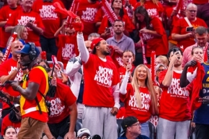 印城代言人!哈利携未婚妻现场助威狂热队季后赛比赛!