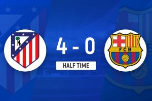 半场-马竞暂4-0巴萨 霍安失误送礼小蜘蛛卢克曼互献传射格子破门